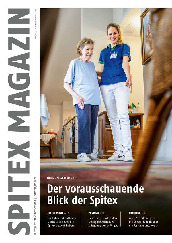 Spitex Schweiz ist der nationale Dachverband von Spitex-Kantonalverbänden und weiteren Organisationen für professionelle Pflege und Unterstützung zu Hause.